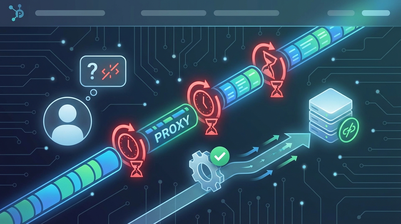 Several factors trigger this behavior. Network latency between you and the proxy server creates delays. If the proxy itself is overloaded with requests, it can’t respond fast enough. Firewall rules might silently drop packets. DNS resolution failures prevent the initial connection. Even your own application’s timeout settings might be too aggressive for the network conditions.